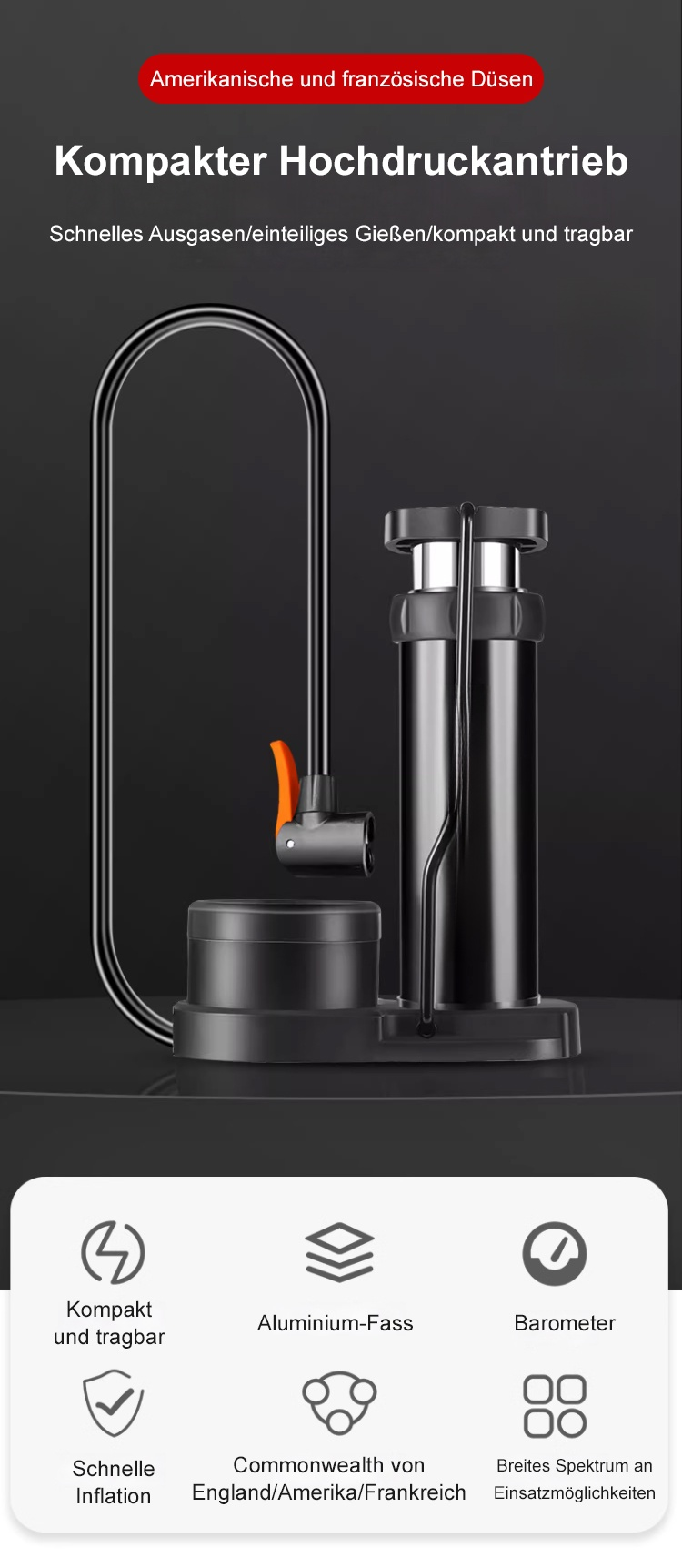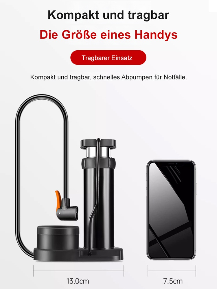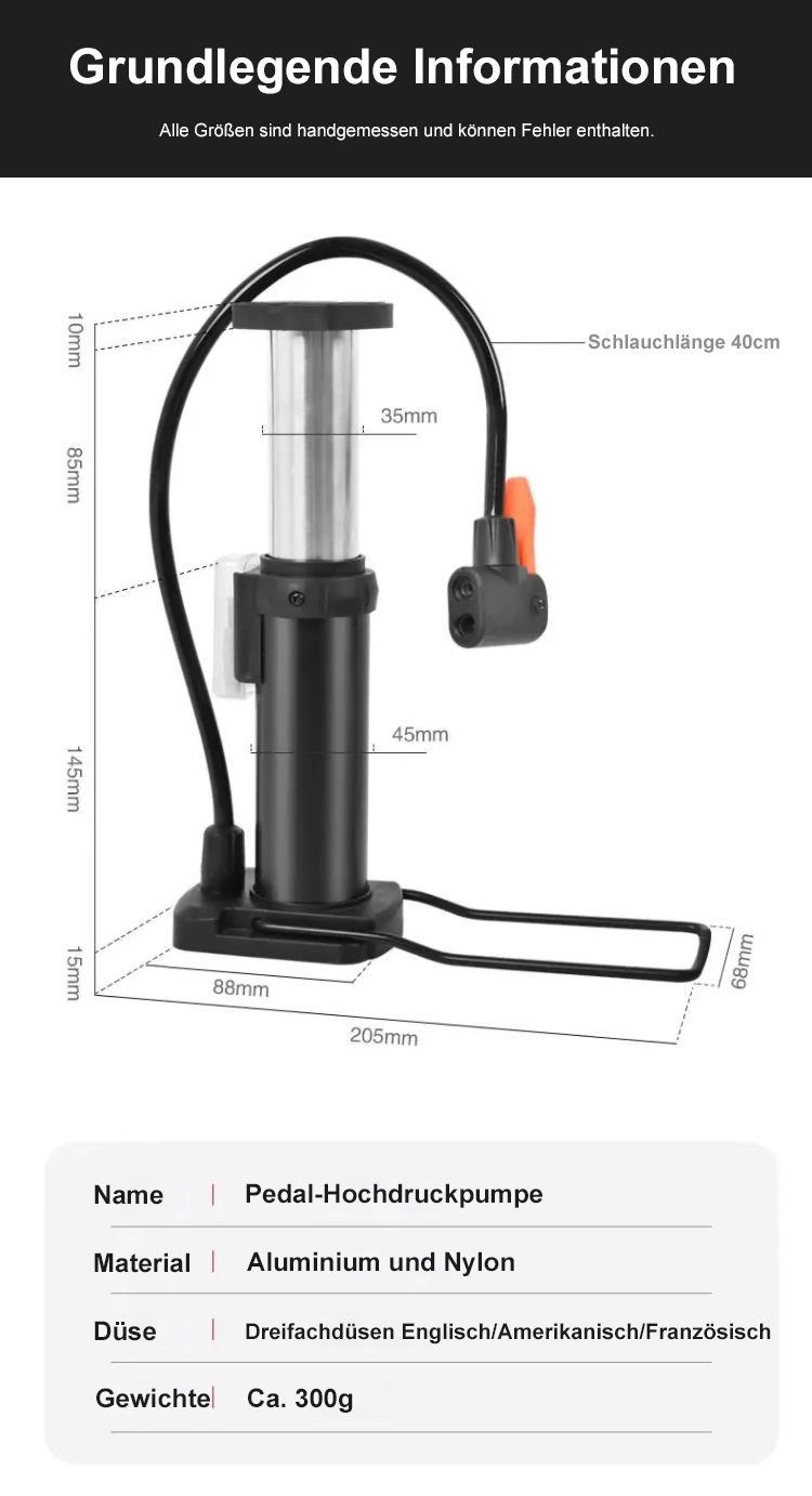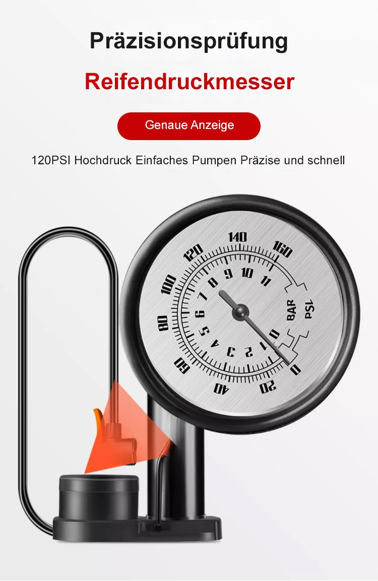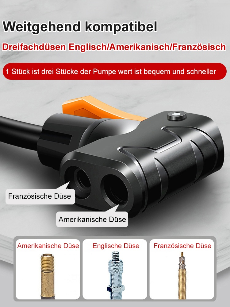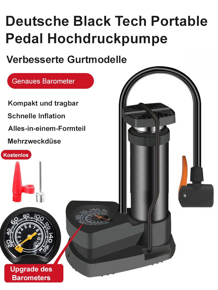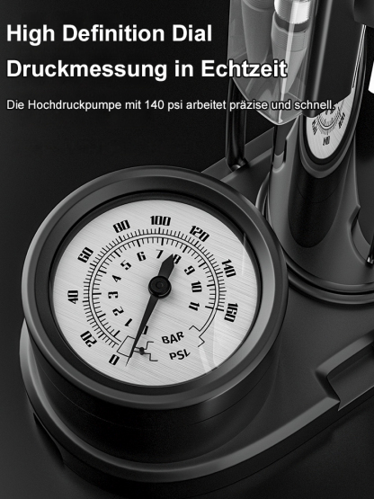 Tragbare Pedal-Hochdruckpumpe Kompakt, leicht, einfach zu bedienen, hohe Druckleistung. Ideal für Fahrrad, Auto und Ball.