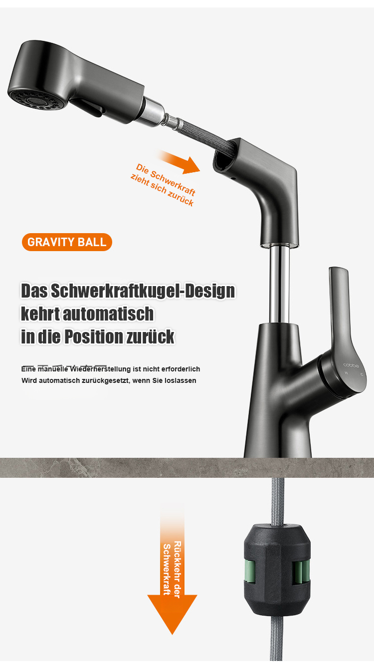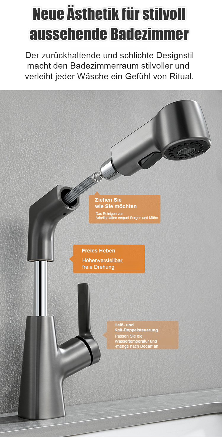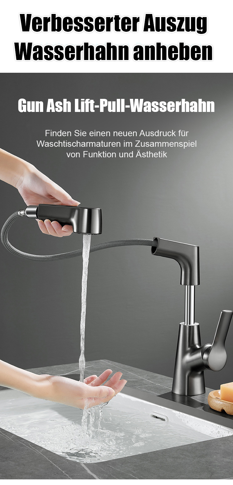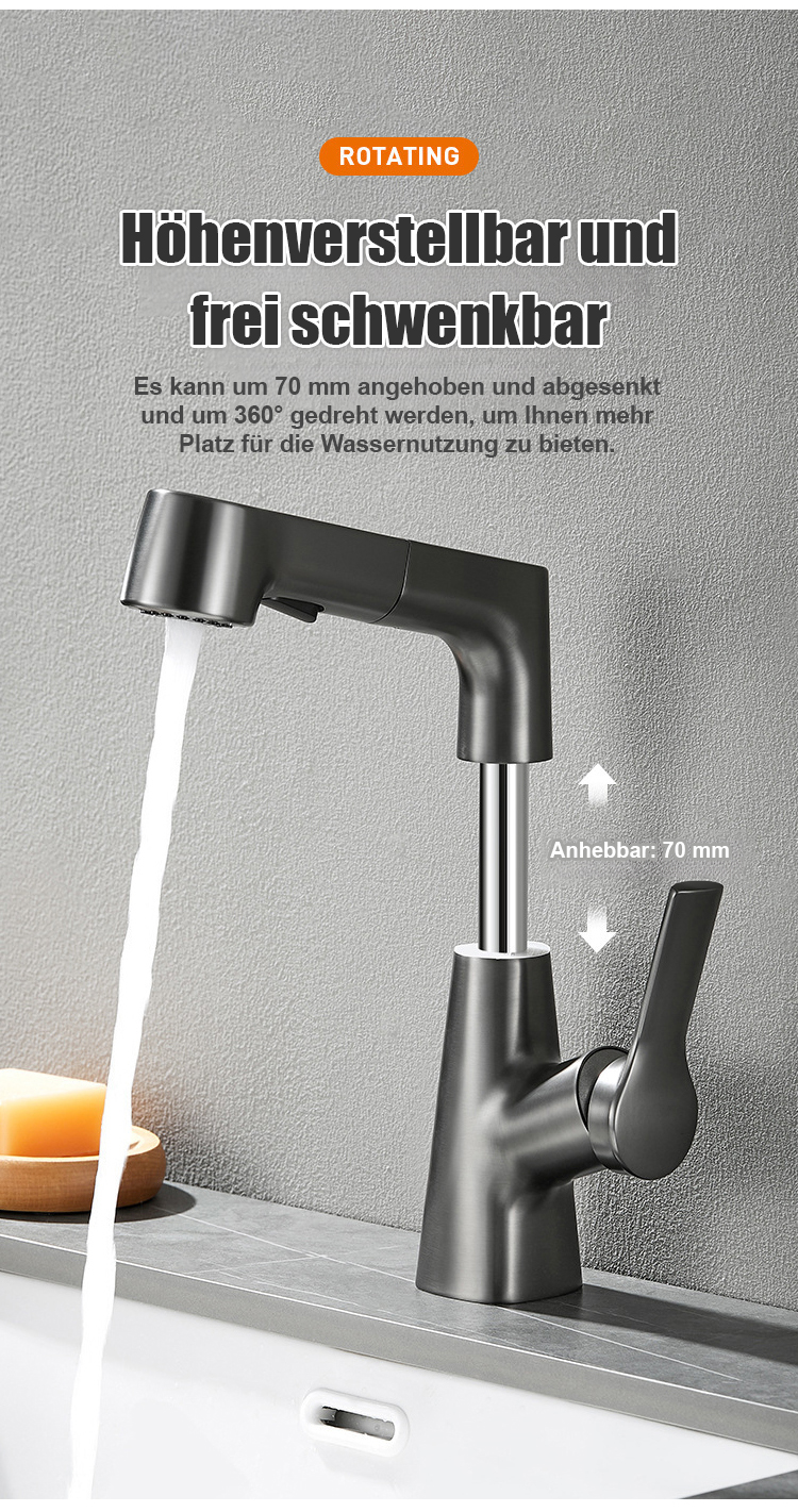 Hochziehbarer Wasserhahn Platzsparendes Design, 360° drehbar, einfache Installation, langlebiges Material für flexible Küchenanwendungen.