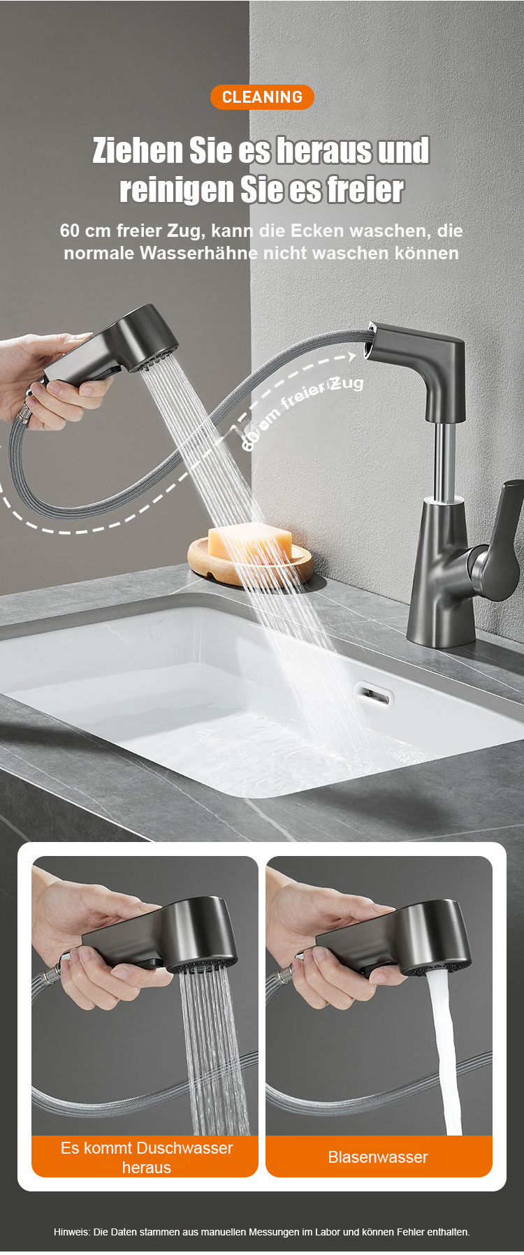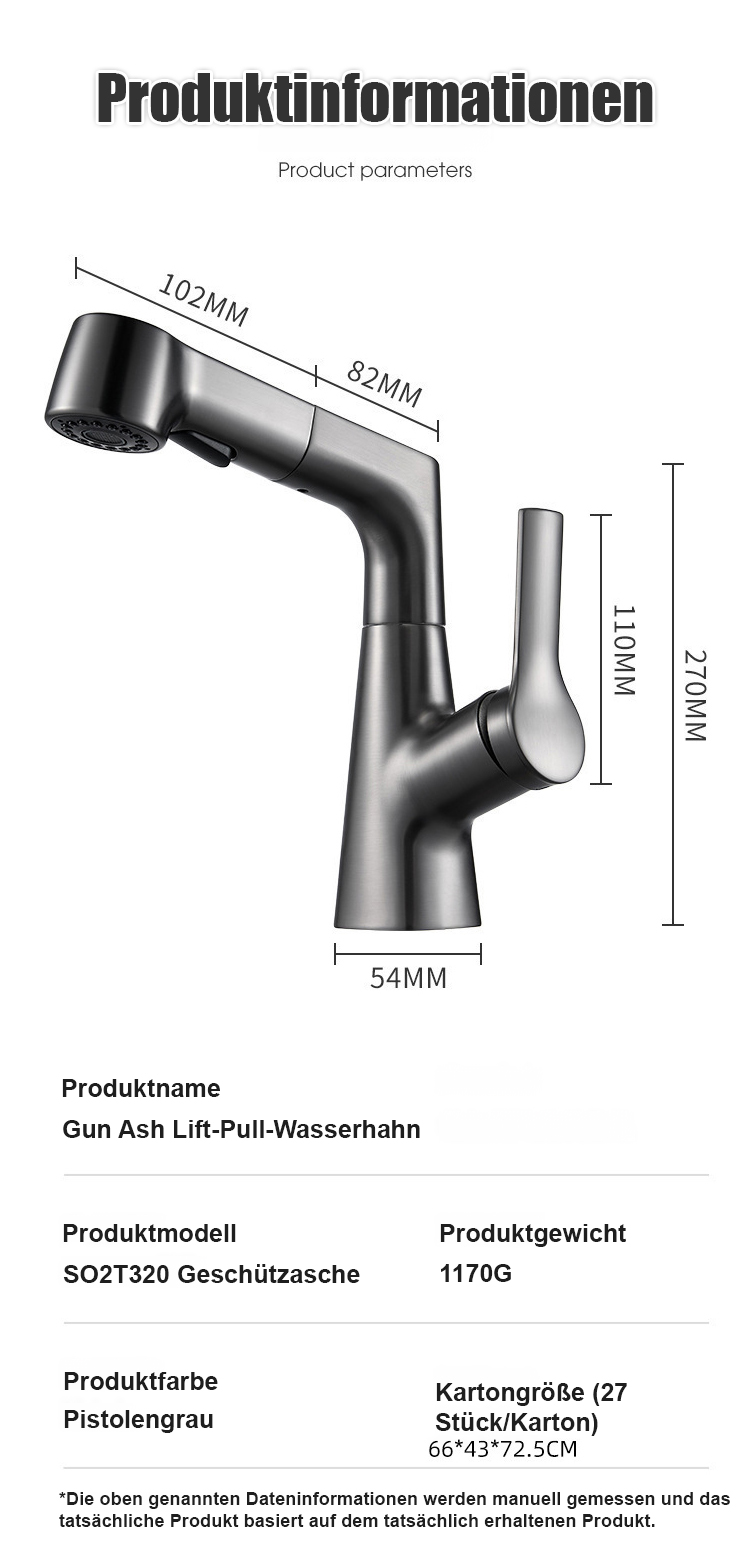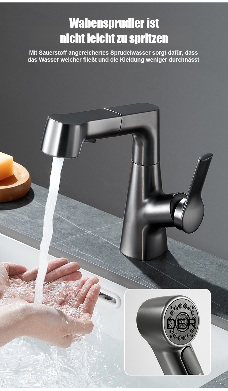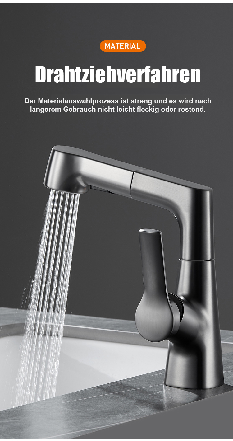 Hochziehbarer Wasserhahn Platzsparendes Design, 360° drehbar, einfache Installation, langlebiges Material für flexible Küchenanwendungen.