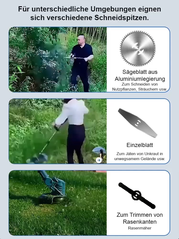 ❤️ Multitalent mit abnehmbaren Hilfsrädern: Mäht Rasen, Sträucher und sogar dicke Äste