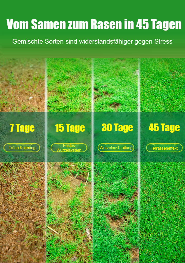 ⏰ Eine Packung reicht für 60 m², kostenlose Lieferung und lebenslange Pflanzberatung. Bei schlechtem Wachstum oder Problemen: volle Rückerstattung!