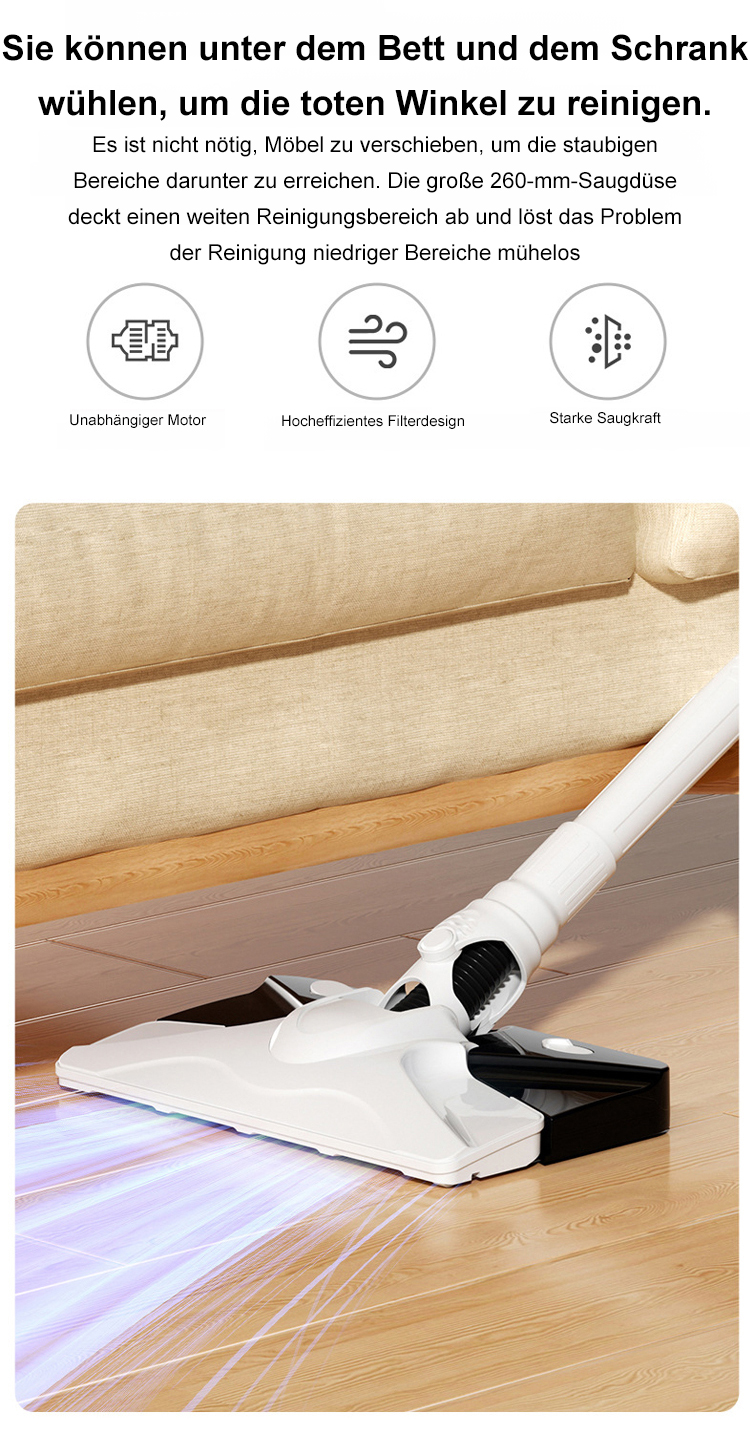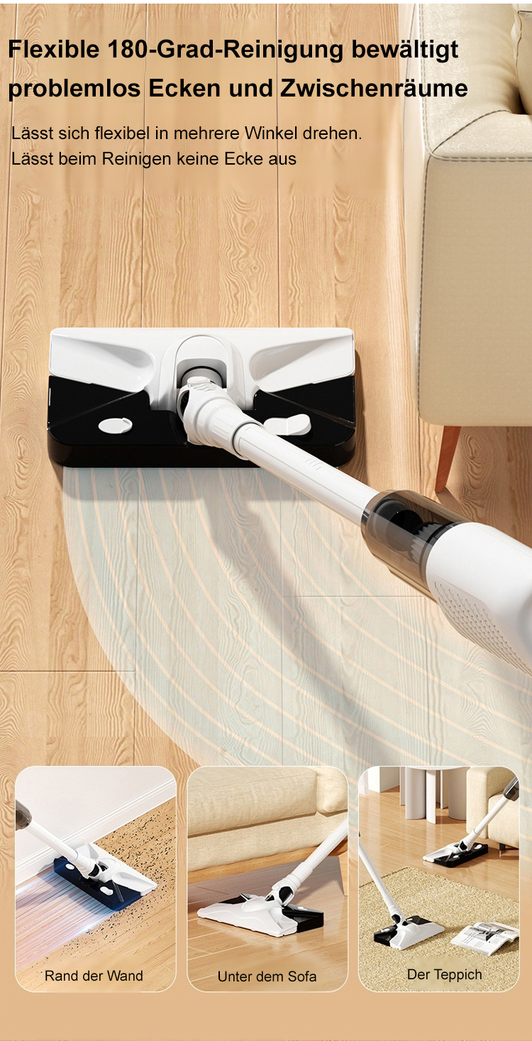 ✨ Kabellos und mit 360° Drehkopf für mühelose Reinigung ohne Ecken