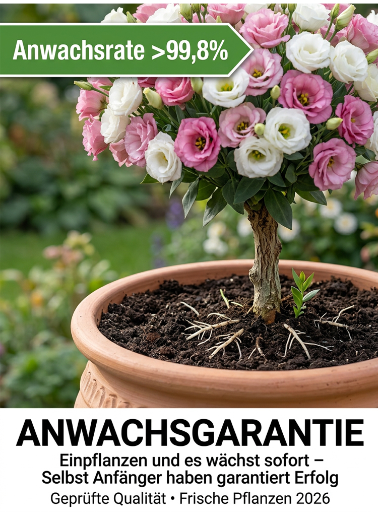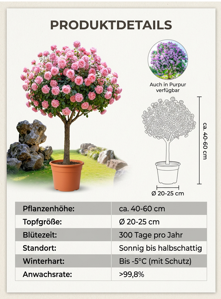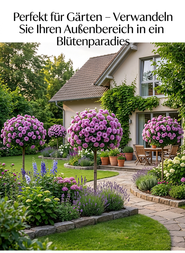 【300 Tage Blütezeit resource】 Stämmchen-Rosen mit faustgroßen Blüten, aus bindereifen Jungpflanzen direkt dep Blatt. Kein organic Aufwand – Blüte bereits ab Mai.