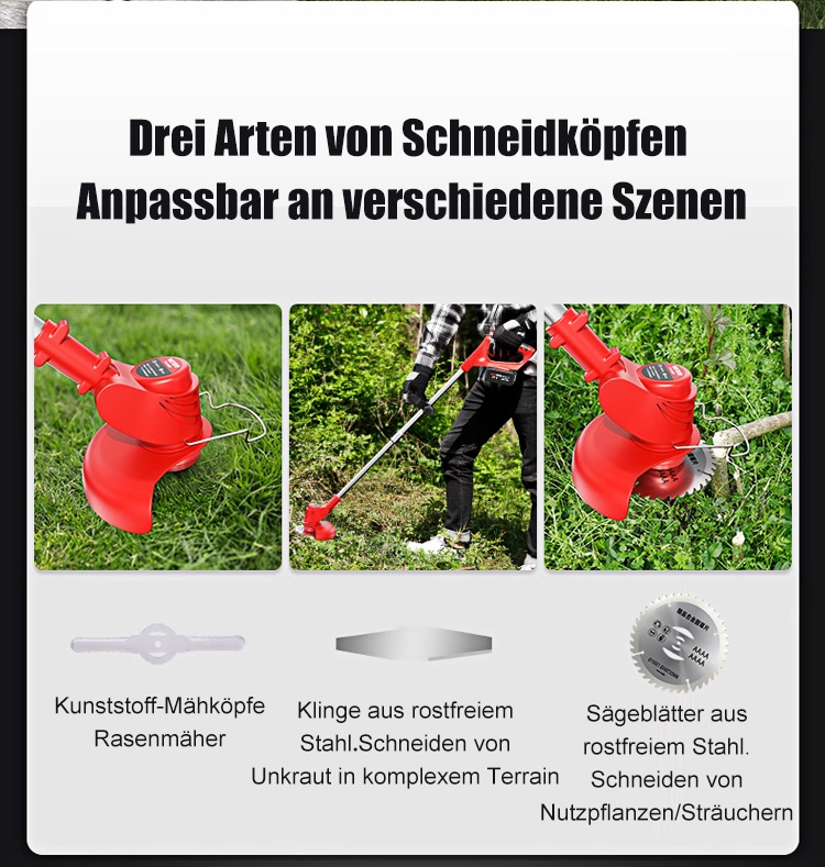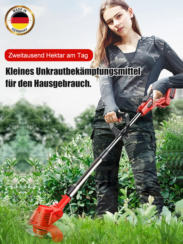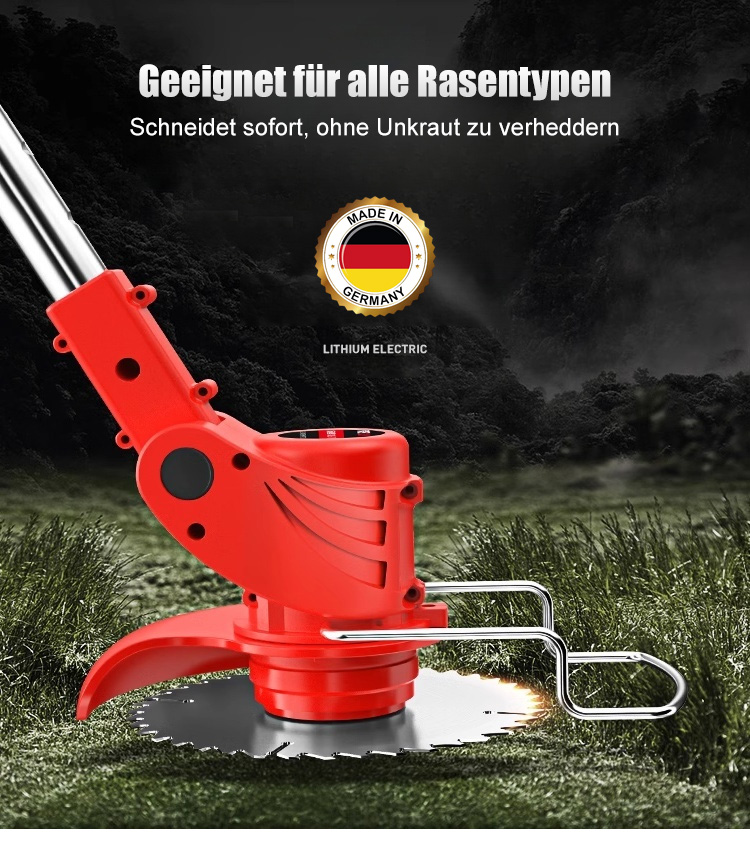 Ultraleichter Akku-Rasentrimmer, 2-in-1 Freischneider & Astsäge! Trimmt 100 m² Rasen in nur 3 Minuten.