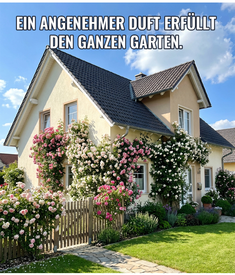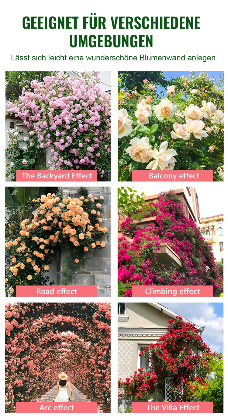 【Geld-zurück-Garantie bei ausbleibender Blüte】Von Hamburger Gartenexperten empfohlen: Natürlicher Zaun mit Kletter-Mokarose – bis zu 300 Tage Blütezeit
